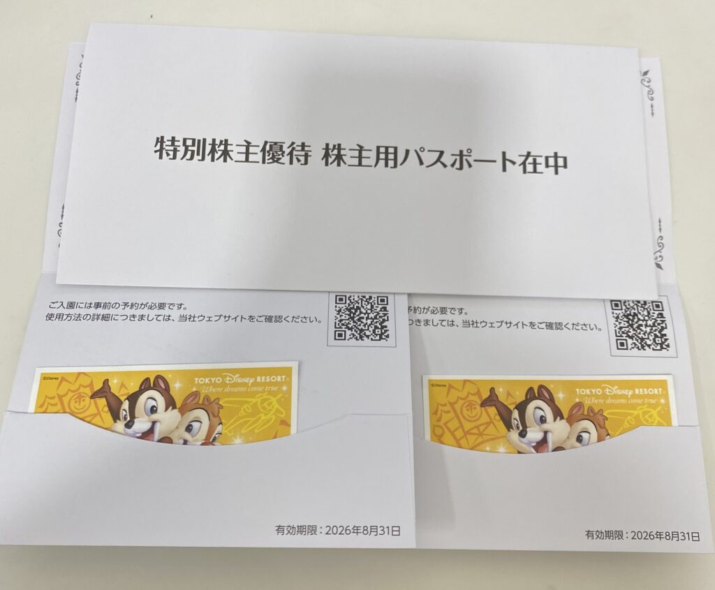 本日は、オリエンタルランドの株主優待券である