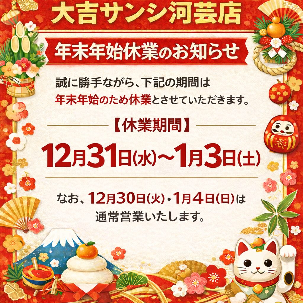 平素より大吉サンシ河芸店をご利用いただき、誠にありがとうございます。