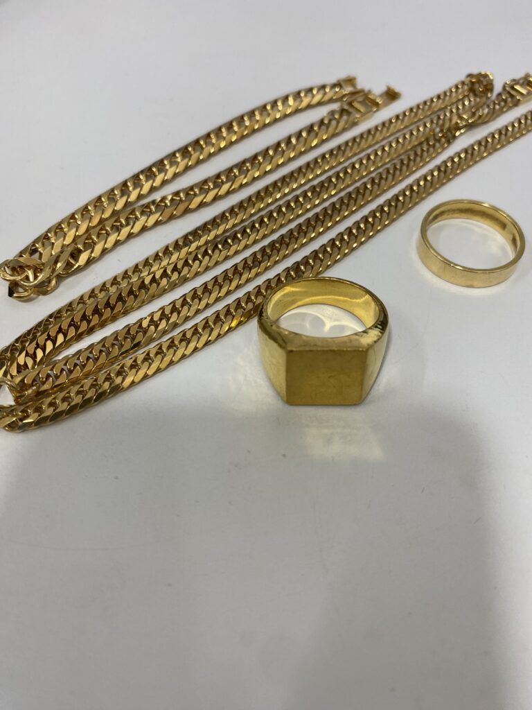 金はK24(純金)・K18・K14など品位によって価格が異なりますが、壊れていても、切れていてもお買取り可能です。